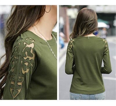 tシャツ レディース 長袖 春 秋 tシャツ コットン 綿 無地 透け感 レディース おしゃれ プルオーバー シャツブラウス オフィス トップス ゆったり リラックス ファッション シンプル 春秋 カ | gizshop