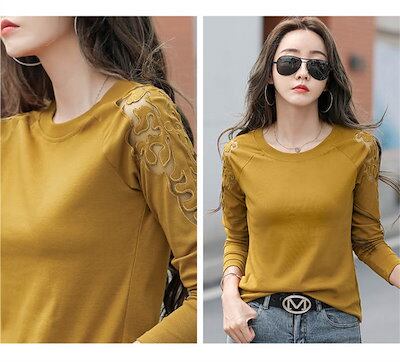 tシャツ レディース 長袖 春 秋 tシャツ コットン 綿 無地 透け感 レディース おしゃれ プルオーバー シャツブラウス オフィス トップス ゆったり リラックス ファッション シンプル 春秋 カ