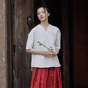 リネン混 tシャツ レディース 半袖 ゆったり 春 夏 無地 森ガール 大人 ナチュラル キーネック 春夏 大きいサイズ 裾前後差 カジュアル シンプル リラックス トップス プルオーバー 着痩せ コ