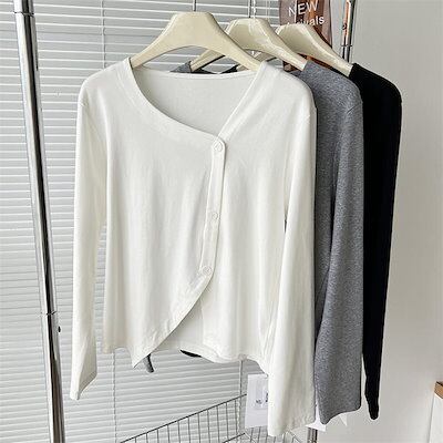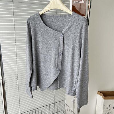 tシャツ レディース 長袖 アシメトリー ブラウス 無地 長袖tシャツ Tシャツ 秋冬 秋 春 長袖 長袖ブラウス トップス 綿 春秋 ジュアル ゆったり オフィス 通勤 日常 ディリー 重ね着 着回 | gizshop