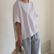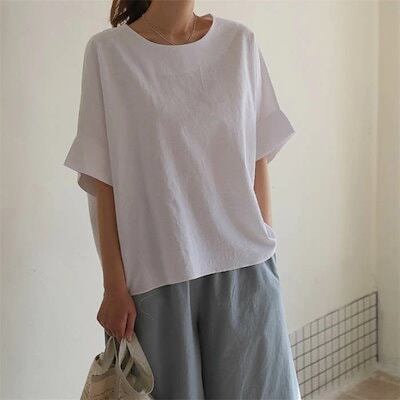 Tシャツ ブラウス レディース 半袖 サイドスリット 無地 柔らかい 春 夏 tシャツ 切り替え おしゃれ プルオーバー シャツブラウス トップス ゆったり リラックス シンプル 大きいサイズ カジュ | gizshop