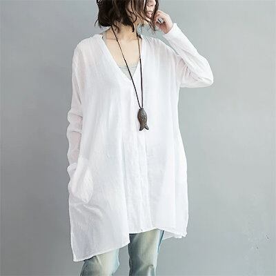 カーディガン レディース 春夏 カーデ ロングカーディガン ロング丈 vネック 透け感 薄手 UV対策 日焼け防止 紫外線対策 長袖 前開き ポケット付き ロングカーデ 無地 ゆったり 体型カバー 着 | gizshop