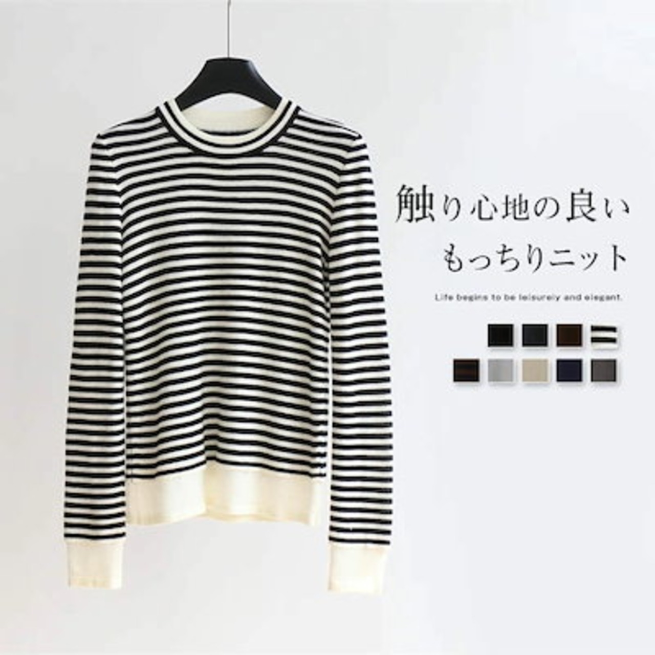 ニットセーター レディース セーター 韓国 黒 長袖 春 秋 冬 フェイクレイヤード 無地 ボーダー 配色 おしゃれ プルオーバー トップス クルーネック ゆったり リラックス シンプル 大きいサイズ | gizshop