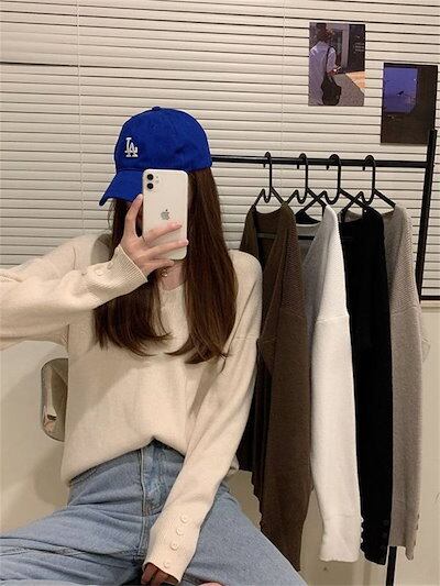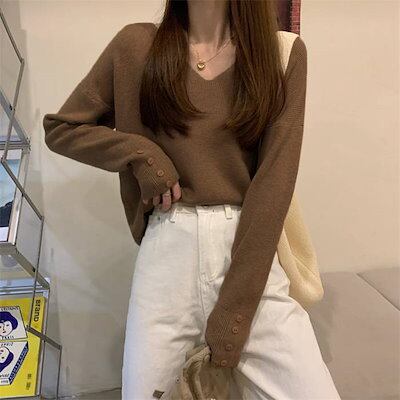 ニット セーター 薄手 レディース もっちり Vネック 洗える 秋冬 秋 春 長袖 無地 長袖ブラウス 無地ブラウス トップス 春秋 ジュアル ゆったり オフィス 通勤 日常 ディリー 重ね着 着回 | gizshop