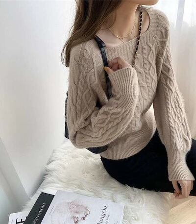 スクエアネック セーター ニット ショート丈 レディース 長袖 無地 リブニット 春 秋 冬 ニットセーター おしゃれ プルオーバー 大人可愛い きれいめ トップス ゆったり リラックス シンプル | gizshop