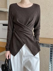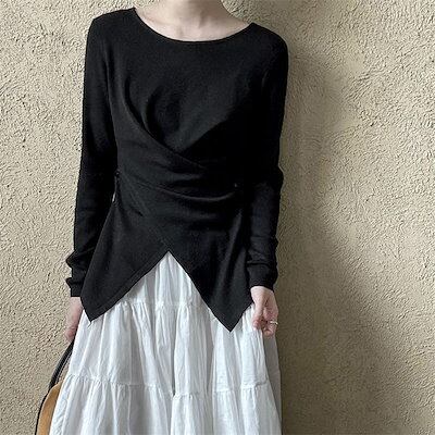 ニット セーター レディース 長袖 春 秋 冬 無地 ニットセーター クルーネック クロス サイドスリット ボタン おしゃれ プルオーバー オフィス トップス ゆったり リラックス 大きいサイズ カジ | gizshop