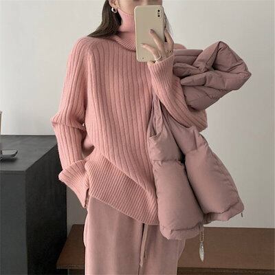 タートルネック ニット セーター レディース リブ 長袖 無地 春 秋 冬 ニットセーター おしゃれ プルオーバー オフィス トップス ゆったり リラックス シンプル 大きいサイズ カジュアル 柔らか | gizshop