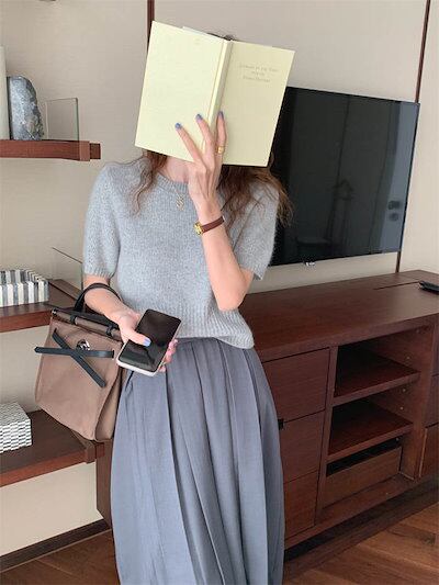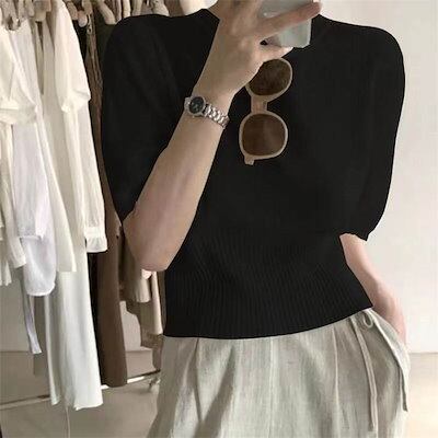 ニット セーター レディース 半袖 春 秋 冬 無地 ニットセーター おしゃれ 秋冬 プルオーバー オフィス トップス ゆったり リラックス シンプル 大きいサイズ カジュアル 柔らかい 仕事 重ね | gizshop