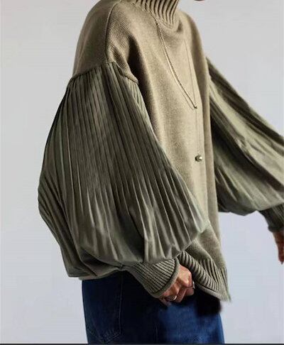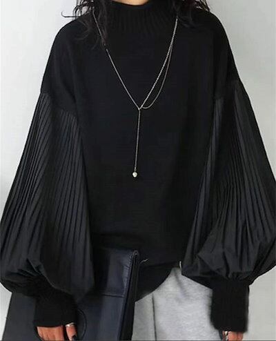 タートルネック セーター レディース トップス ドッキング 長袖 無地 秋冬 プリーツ 春 秋 冬 リブ リブニット ニットセーター おしゃれ プルオーバー オフィス ゆったり リラックス シンプル | gizshop