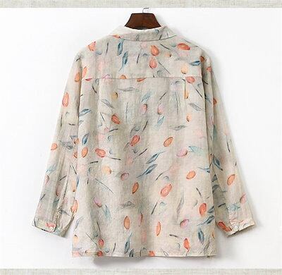 シャツ レディース ブラウス 夏 長袖 綿麻風 花柄 総柄 コットン リネン シャツブラウス 配色 トップス 大きサイズ 前開き 羽織り シンプル カジュアル 春 夏 秋 冬 大人 体型カバー ゆった | gizshop