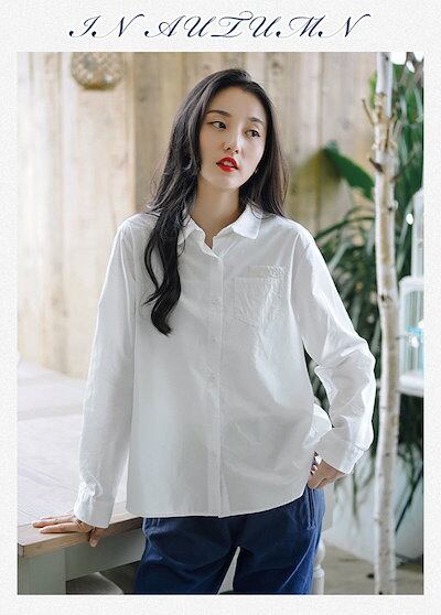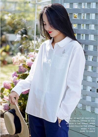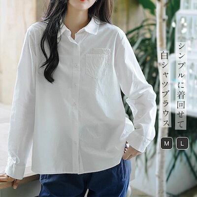 シャツ レディース 長袖 白 シャツ ブラウス シャツブラウス レディース トップス 春 秋 無地 カジュアル シャツ 春トップス ゆったり 体型カバー 重ね着 綿 コットン 通勤 OL シンプル | gizshop