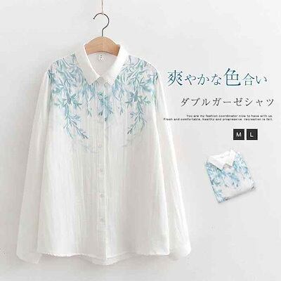 ダブルガーゼシャツ レディース 春夏 ナチュラル 柄 ダブルガーゼ 綿 刺繍 シャツブラウス ガーゼシャツ 長袖 トップス 春 秋 綿 コットン カジュアル 羽織り かわいい 2重ガーゼ 体型カバー | gizshop