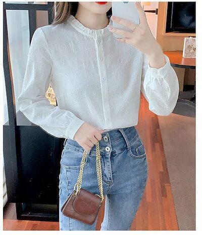 フリル襟 シャツ ブラウス 長袖 立ち襟 花柄 シャツブラウス レディース トップス スーツ インナー 春 秋 冬 フォーマル 大人 可愛い 白シャツ 長袖シャツ おしゃれ シンプル 重ね着 体型カバ | gizshop
