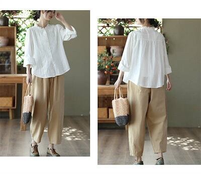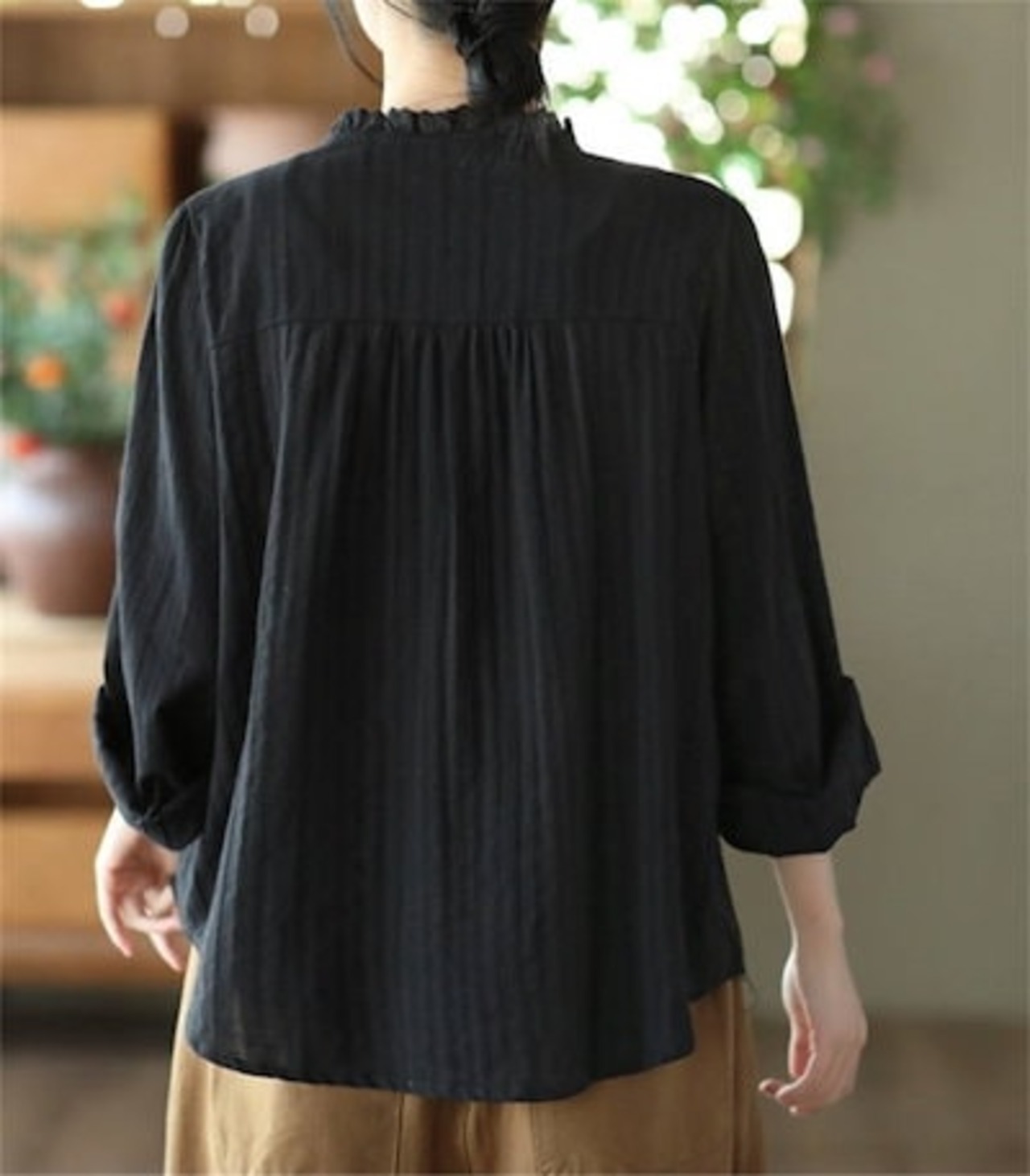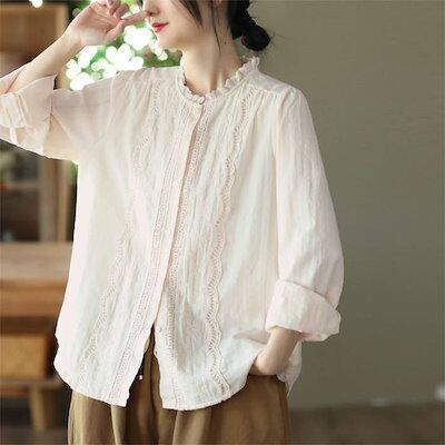 シャツ レディース シャツブラウス 春 夏 秋 コットン 長袖 長袖シャツ 無地シャツ トップス 綿 春夏秋 カジュアル 無地 レース ギャザー フリル衿 ナチュラル ゆったり 清楚 森ガール 通勤 | gizshop