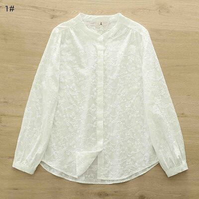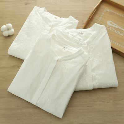 刺繍 シャツ レディース 春秋 長袖 綿 ブラウス 綿 秋冬 バンドカラー シャツブラウス トップス カジュアル ナチュラル おしゃれ シンプル 通勤 通学 羽織り 春 秋 オフィス お洒落 コット | gizshop
