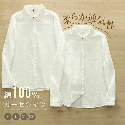 ガーゼシャツ レディース 綿 シャツブラウス 春秋 秋冬 ダブルガーゼ シャツ ブラウス 長袖 トップス カジュアル 無地 COTTON 大きいサイズ 体型カバー 柔軟 通勤 春 秋 冬 シンプル 着 | gizshop