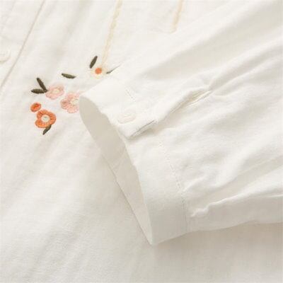 ガーゼ シャツ 2重ガーゼ シャツブラウス レディース 七分袖 花柄 刺繍 ギャザー トップス 春 夏 ガーゼシャツ 羽織り 大人 カジュアル ナチュラル ダブルガーゼ 体型カバー ゆったり 綿 無地 | gizshop