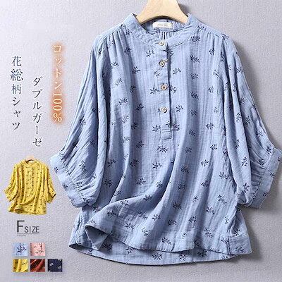 ブラウス 夏 コットン ガーゼブラウス レディース 5分袖 シャツブラウス レディースブラウス トップス 柄トップス 柄シャツ 総柄ブラウス カジュアル 春夏 大人 花柄 柄 総柄 バンドカラー ガー | gizshop
