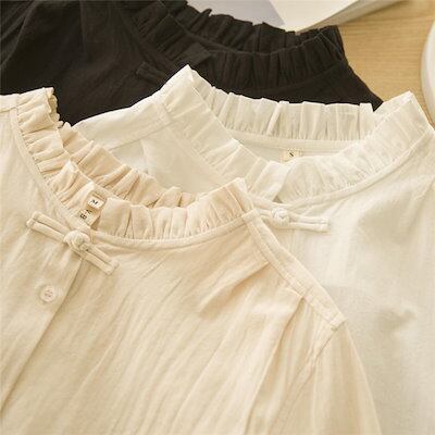 フリル襟 シャツ ブラウス レディース 春 秋 シャツブラウス チャイナボタン 白シャツ 長袖 大人 可愛い トップス 綿 コットン カジュアル 無地 シンプル 通勤 オフィス 仕事 スーツ インナ | gizshop