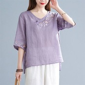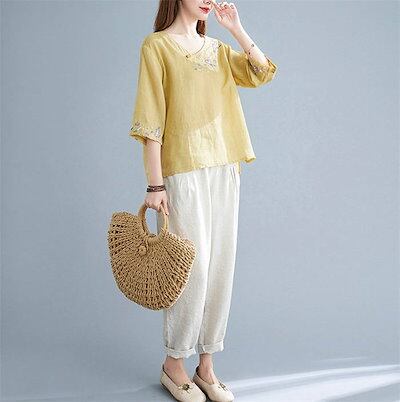 ブラウス 夏 レディース 7分袖 刺繍 花柄 シャツブラウス レディースブラウス トップス おとな カジュアル 春夏 大人 クルーネック 可愛い キレイめ 楽ちん シンプル 涼しい 着心地 仕事 シン | gizshop