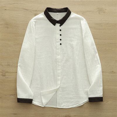 ガーゼ シャツ ダブルガーゼ シャツブラウス レディース 長袖 トップス 春 新作 ガーゼシャツ 配色 襟 袖口 羽織り ブラウス ギャザー ラウンドヘム 大人 カジュアル ナチュラル 体型カバー ゆ | gizshop
