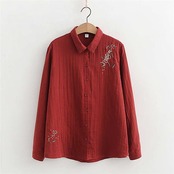 ガーゼ シャツ レディース 春 秋 花柄 刺繍 ダブルガーゼ 綿 シャツブラウス ガーゼシャツ シャツ ブラウス 長袖 トップス ナチュラル 大人 可愛い カジュアル 秋トップス 2重ガーゼ 体型カバ | gizshop