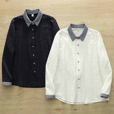 ガーゼシャツ レディース 綿 シャツブラウス 春秋 秋冬 ダブルガーゼ シャツ ブラウス 長袖 トップス カジュアル 無地 千鳥柄 襟 ガーゼブラウス 大人 可愛い ゆる 体型カバー 通勤 春 秋 冬 | gizshop