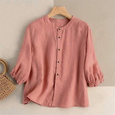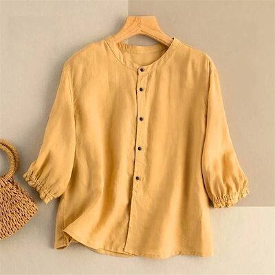 シャツ レディース 7分袖 コットン 春 夏 秋 春夏秋 シャツブラウス レディースシャツ トップス 無地 シャツ 薄手 パフ袖 パフスリーブ ノーカラー 綿 柔らかい 前開き シンプル 軽い 着心地 | gizshop