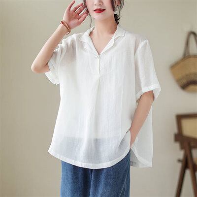 ブラウス レディース シャツブラウス 春夏秋 コットン リネン 半袖 半袖ブラウス トップス テーラードカラー 無地 綿 麻 春 夏 秋 ナチュラル シンプル 上品 重ね着 着痩せ 着心地 リラックス