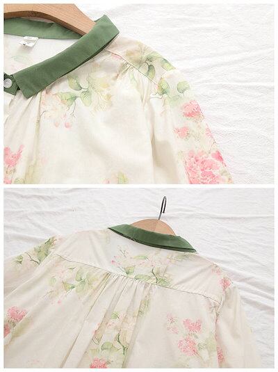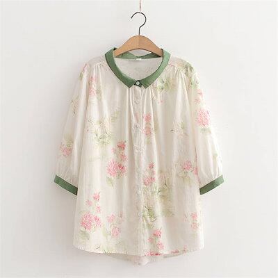 シャツ レディース コットン 夏 七分袖 柄 トップス レディースシャツ コットンシャツ 花柄シャツ シャツブラウス レディーストップス 前開きシャツ 七分袖シャツ 柄シャツ 総柄シャツ 春夏トップス | gizshop