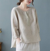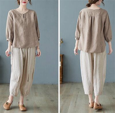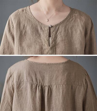 ブラウス 夏 レディース 7分袖 シャツブラウス レディースブラウス トップス おとな カジュアル 無地ブラウス 春夏 大人 無地 クルーネック パフ袖 パフスリーブ キーネック 可愛い キレイめ 楽 | gizshop