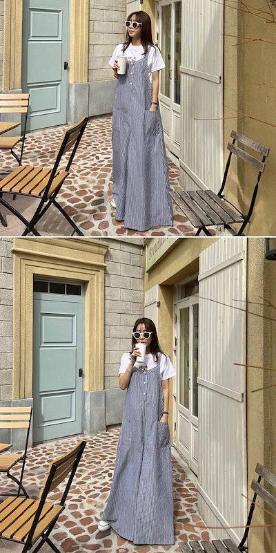 サロペット パンツ レディース オールインワン 大きいサイズ 春 夏 きれいめ オーバーオール ワイドパンツ ワイド コンビネゾン つなぎ ゆったり 長ズボン シンプル ストライプ キャミワンピ | gizshop