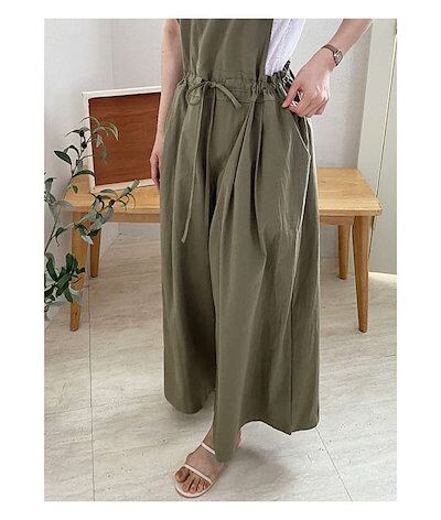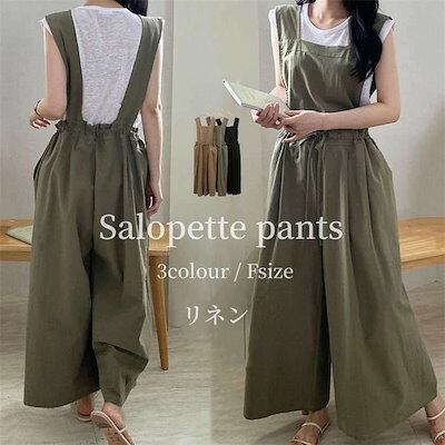 サロペット レディース 春 夏 リネン 綿麻 ゆったり オールインワン つなぎ オーバーオール パンツ ワイドパンツ ロングパンツ ワイド ロング クルーネック コットン ポケット付き 無地 涼しい | gizshop