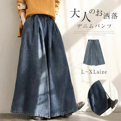 ワイドパンツ デニム デニムパンツ レディース サイドスリット パンツ ボトムス ズボン 長ズボン ロングパンツ ロング丈 ウエストゴム 大きいサイズ ゆったり ワイドデニム ジーンズ おしゃれ 春 | gizshop