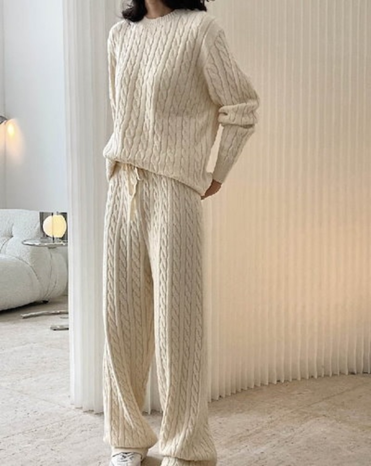 ワイドパンツ レディース ニットパンツ 春 秋 ニット パンツ ケーブル編み ロング丈 レディース ガウチョ パンツ ニットパンツ 無地 キレイめ ハイウエスト 美脚 ケーブル編みニット ロングパン | gizshop