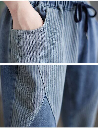 テーパードパンツ デニム パンツ レディース バルーンパンツ 春 秋 バイカラー ストライプ柄 大きいサイズ 体型カバー おしゃれ ゆったり カジュアル ナチュラルカジュアル 着痩せ ボトムス 無地 | gizshop