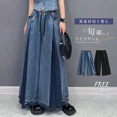 ワイドパンツ デニム レディース 切り替え フレアパンツ スカーチョ 春 秋 ロング丈 華奢見え 体型カバー おしゃれ ゆったり カジュアル ナチュラルカジュアル 着痩せ ボトムス 春物 春 秋 ゆる | gizshop