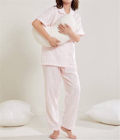 チェック ガーゼ パジャマ レディース ダブルガーゼ ドット ルームウェア 春 夏 秋 冬 長袖 半袖 ロングパンツ 部屋着 セットアップ 2点セット 寝間着 寝巻き 上下セット 前開き 大きいサイズ | gizshop