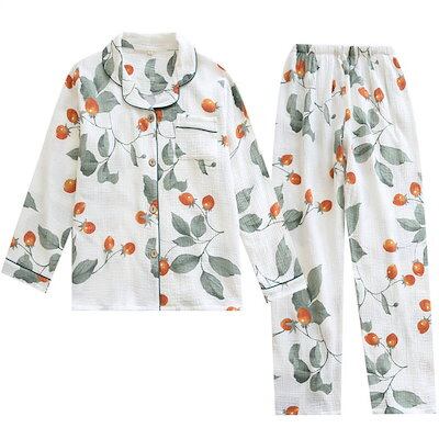 ガーゼ パジャマ レディース ルームウェア パンツ 総柄 春 秋 ガーゼコットン キーネック フリル チェック 春秋 長袖 綿 部屋着 セットアップ 2点セット ナイト 寝間着 寝巻き 上下セット 前 | gizshop