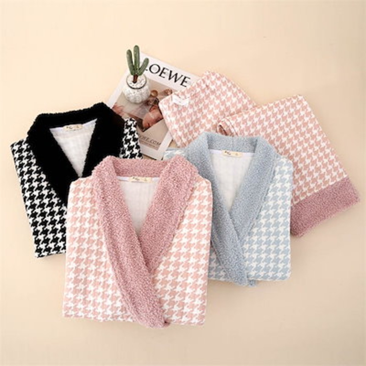 パジャマ レディース ルームウェア パンツ 秋 冬 コットン 千鳥柄 厚手 パジャマ レディース 春 秋冬 綿 切り替え 長袖 2点セット ナイト 寝間着 寝巻き 上下セット 前開き 快適 大人 コッ | gizshop