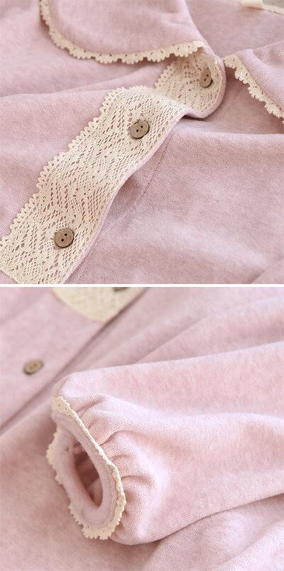 パジャマ レディース セットアップ ルームウェア 春 秋 冬 長袖 襟付き レース 切り替え 丸襟 前開き 無地 ロングパンツ 裾フリル ウエストゴム 部屋着 2点セット 寝間着 寝巻き 上下セット | gizshop
