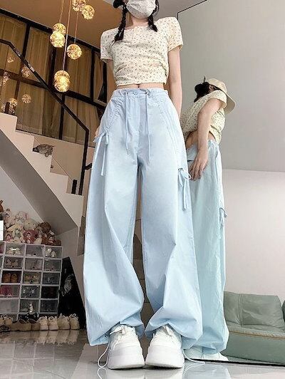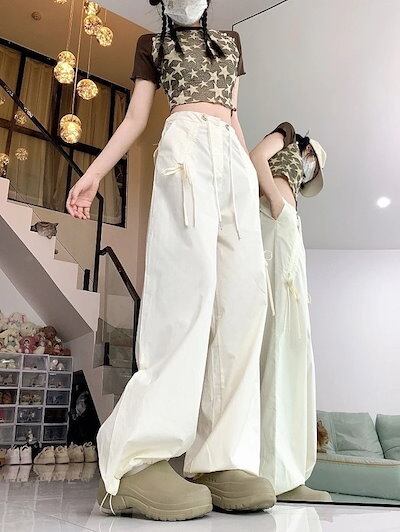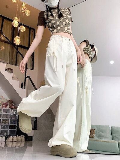 2025春夏パンツ ロング丈 カーゴパンツ ワイド ストレート ハイウエスト 美脚効果 脚長効果 細見え 夏 白 黒 青 韓国ファッション レディース かわいい おしゃれ カジュアル お出かけ30%ま | gizshop