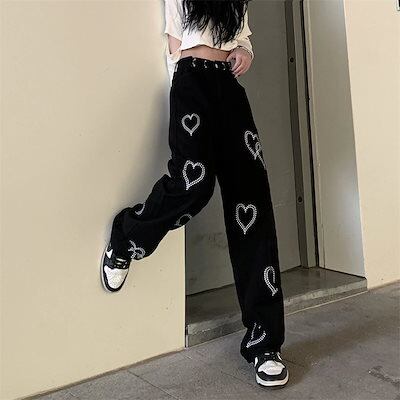 トレンド ジーンズ レディース 韓国 レディース テーパードパンツ ダンス衣装 ウエストゴム 美シルエット アメリカン レトロ ラブ カジュアル パンツ オールマッチ