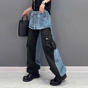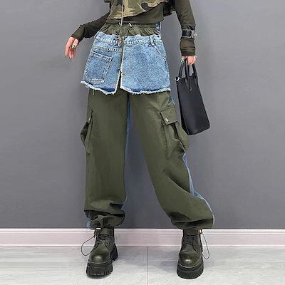 春秋 デニムドッキング ロングパンツ 欧美風 カーゴパンツ レディース ロングパンツ メガ割