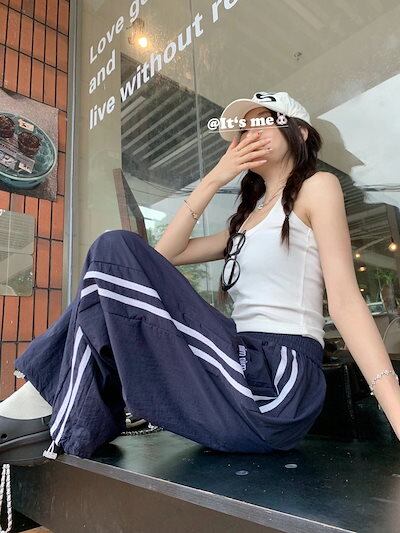 24 パンツ ロング丈 ハイウエスト ズボン 美脚効果 脚長効果 細見えサイド おしゃれ かわいい 韓国系ファッション レディース お出かけ トラック