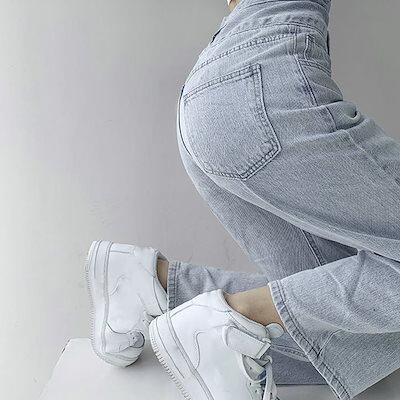 ハイウエスト デニムパンツ 韓国ファッション レディース ボトムス体型カバー 春夏秋冬 通学通勤