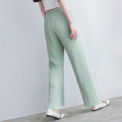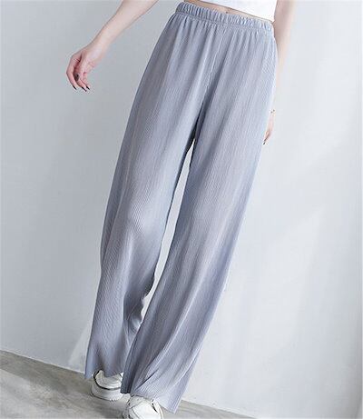 カットオフリブパンツ ワイドパンツ レディース パンツ プリーツ パンツ 体型カバー ロング丈 ボトムズ 春夏 夏 裏地あり 無地 おしゃれ カジュアル ゆったり セルフカット リブパンツ カット | gizshop