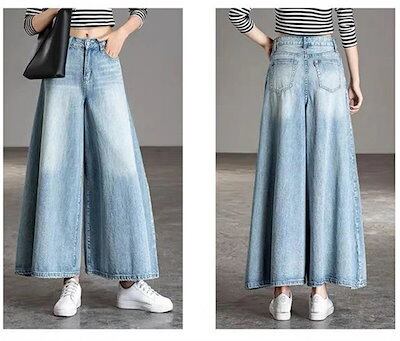 デニムパンツ レディース きれいめ ジーンズ スカーチョ デニム ロングパンツ ワイドパンツ デニム デニムスカーチョ 股上深め 大きいサイズ 春夏秋冬 フレアパンツ ゆったりシルエット おしゃれ 体 | gizshop