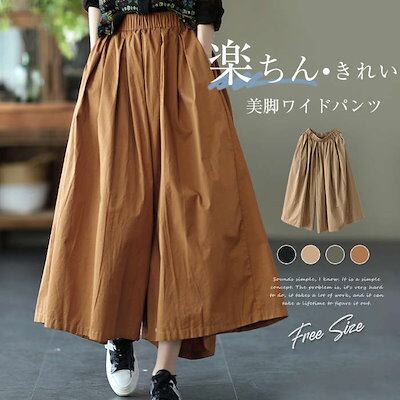 ワイドパンツ レディース きれいめ 春夏 大きいサイズ 九分丈パンツ ガウチョパンツ ボトムス ナチュラル ワイドパンツ シンプル コットン ウエストゴム 無地 スカーチョ 体型カバー カジュアル レ | gizshop