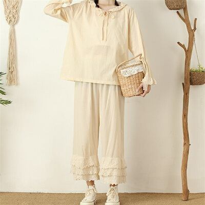 ぺチパンツ ペチコート パンツ レディース レース 裾レース 刺繍 ロング 九分丈 春 夏 透け防止 綿100 綿 コットン ボトムス ワイド 重ね着 無地 大人可愛い フレアパンツ インナー 下着 | gizshop
